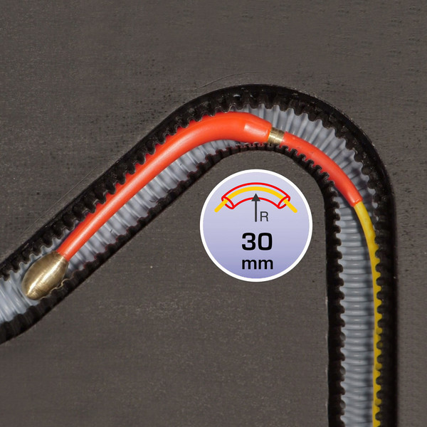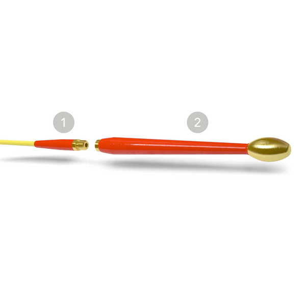 Optimizirana začetna cevka (1) sistema LTC poveča značilnosti upogibanja profila iz steklenih vlaken Polykat® na mestu prehoda tulca in kabla. V medsebojnem delovanju z izboljšano sondo Flexi (2) zmanjša začetna cevka ne samo nevarnosti zloma traku, marveč omogoča tudi manjše polmere upogibanja do 30 mm, brez izgube stabilnosti potiska. Skrajšana uporaba medi zagotavlja pri tem v povezavi s plastiko visoke zmogljivosti optimizirano uvajanje sile pri potiskanju v notranjost.